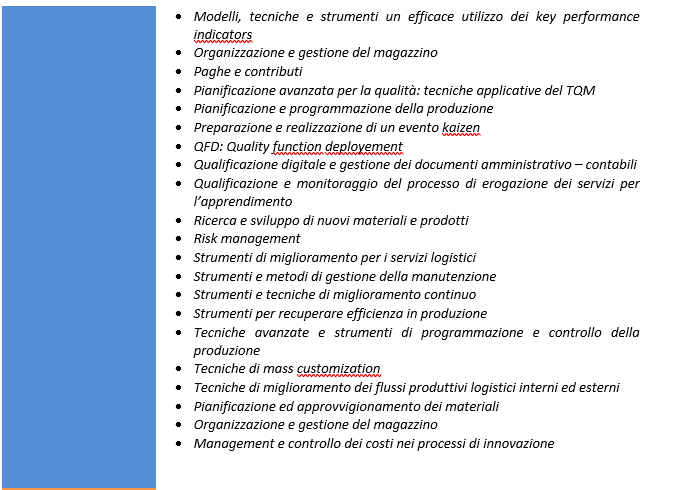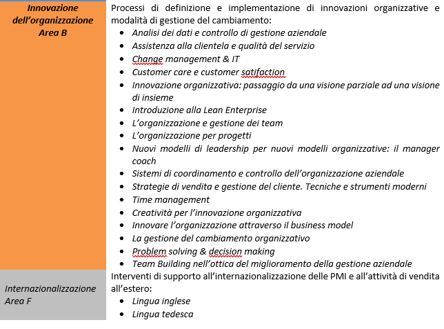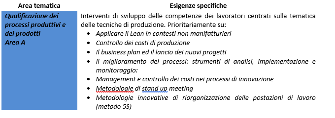 Il piano presentato ha pertanto sviluppato le seguenti aree tematiche in risposta alle esigenze formative delle imprese coinvolte: