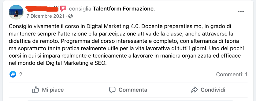 Eroghiamo corsi professionali da più di 20 anni e tantissimi nostri allievi (la stragrande maggioranza) hanno ricavato soddisfazione dal nostro lavoro, (ri)qualificandosi e ottenendo una preziosa opportunità per entrare nel mondo del lavoro.